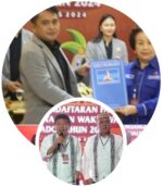 Dalam kegiatan ini, NVB menyerahkan dokumen pendaftaran pasangan calon Audy Karamoy – Lucky Datau yang diterima langsung Ketua KPU Kota Manado Farley Kaparang. (Simon)
