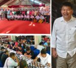 FOTO: (Kiri Atas) Audy Karamoy (tengah) saat tampil di lomba Musik Bambu Umum dan Musik Gerejawi Seri B, (Kiri Bawah) Audy Karamoy (kanan baju putih) saat mengikuti lomba Catur Seri B, (Kanan) Audy Karamoy, sosok pemimpin yang dermawan.