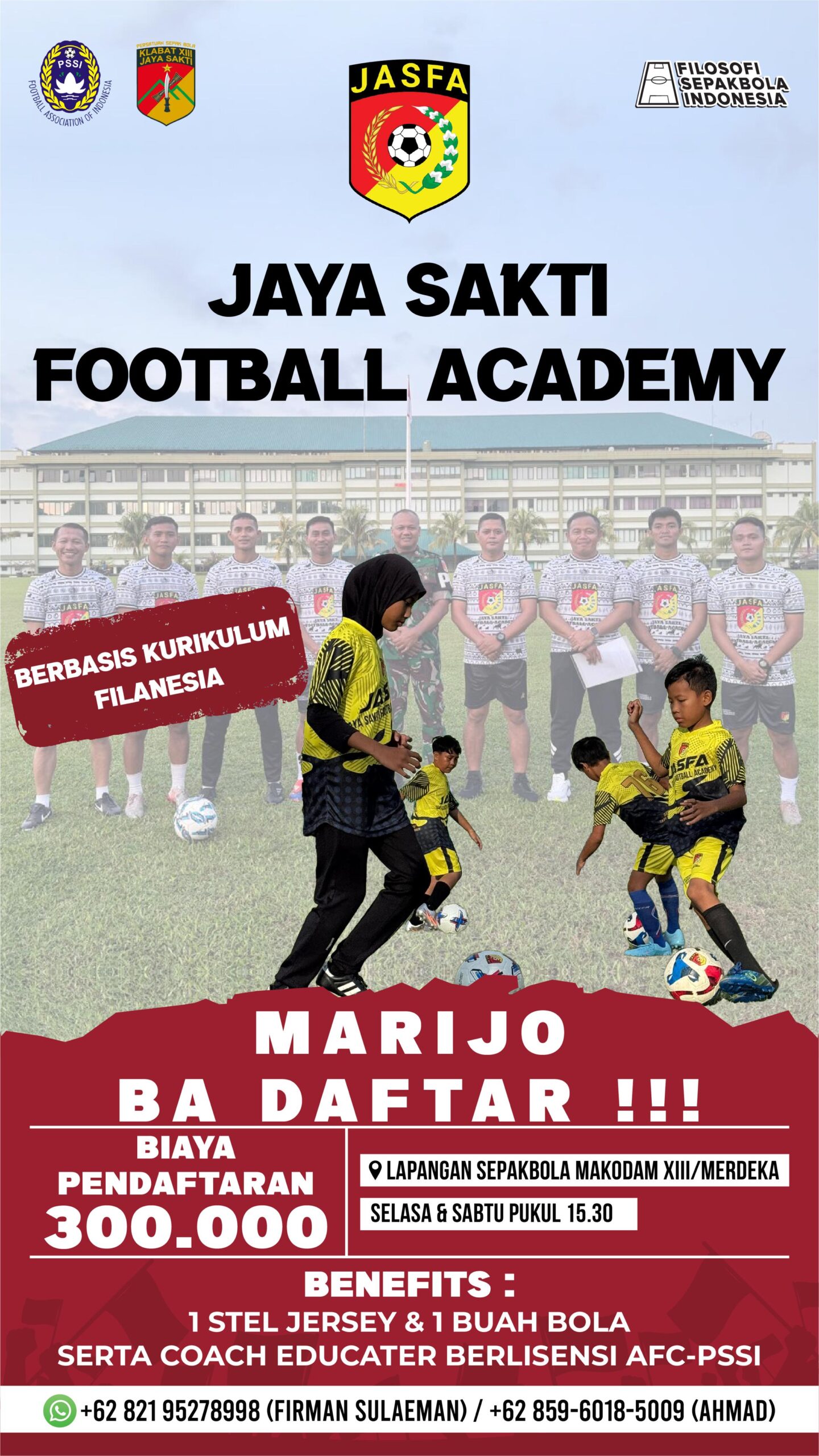 So, sebagai orang tua yang baik, ayah dan bunda pasti ingin men-support apa yang menjadi kegemaran anak, bukan? Nah, tunggu apa.lagi, segera daftarkan anak anda SSB Jaya Sakti dan nikmati semua keunggulan yang kelak membentuk anak anda menjadi seorang pemain sepak bola yang profesional. (Simon)