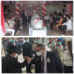 MITRA, JP- Bupati Minahasa Tenggara (Mitra) James Sumendap SH., bersama jajarannya menyambut kedatangan Almarhumah Telly Tjanggulung Bupati Mitra periode 2008- 2013 dan disemayamkan sejenak di Atrium Kantor Pemkab Mitra, Jumat (08/01/2021).