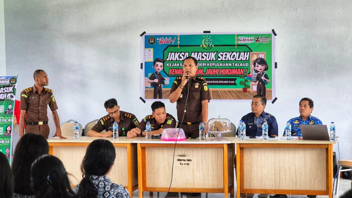 ‎TALAUD, JP  – Kejaksaan Negeri (Kejari) Kepulauan Talaud memberikan edukasi hukum bagi pelajar melalui  program Jaksa Masuk Sekolah agar para pelajar tahu dan mengerti soal hukum sejak dini, mencegah mereka dari tindak kriminal di kalangan pelajar serta menjadi generasi muda yang bertanggung jawab dan berintegritas.