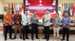 Foto: Ketua KPU Talaud Andri L. J. Sumolang didampingi komisioner KPU Talaud lainnya saat menyerahkan hasil rekapitulasi Verfak kedua dan rekapitulasi akhir syarat dukungan bacalon perseorangan kepada Rudi Pangalila, LO Jekmon Amisi-Jeti Pulu, Sabtu (17/08).