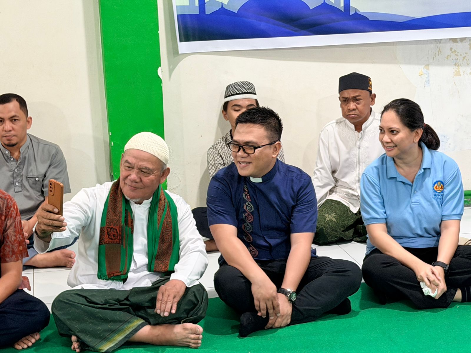 Di mana Pastor Maxi Manewus Pr selaku Paroki Pineleng duduk berdampingan dengan Imam Masjid Al Mustaqim Sidiq Hamadi, bersama ibu-ibu yang tergabung dalam WKRI Cabang Pineleng dan ibu-ibu Masjid Al Mustaqim beserta umat muslim lainnya. Keduanya terlihat sangat akrab dan bersahabat. Bahkan Imam Sidiq langsung mengambil handphonenya lalu berfoto selfi dengan Pastor Maxi.