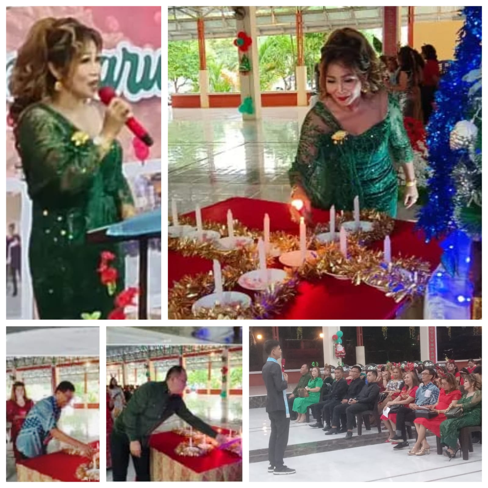 Ketua Umum The Collective Dance Sulut Everdina Manurung-Tangapo saat membawakan sambutan di perayaan Pra Natal TV Sulut.