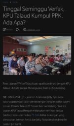 Pada Home Politik jejapublik.com edisi Kamis 27 Juni 2024 terdapat berita berjudul “Tinggal Seminggu Verfak, KPU Talaud Kumpul PPK. Ada Apa?”.