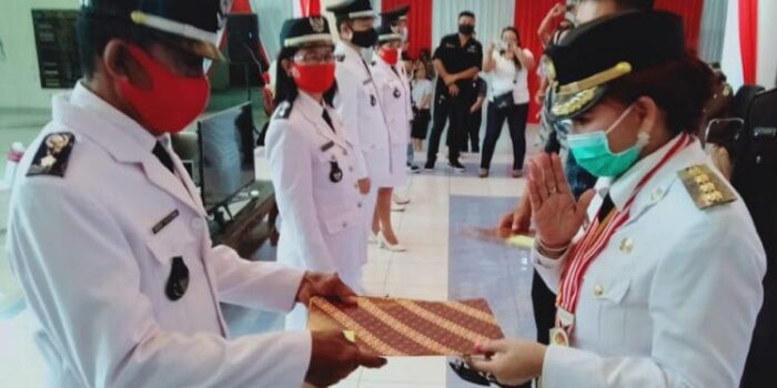 MINUT, JP–Bupati Minut DR Vonnie A Panambunan STh (VAP), menyerahkan piagam kepada 16 desa di…