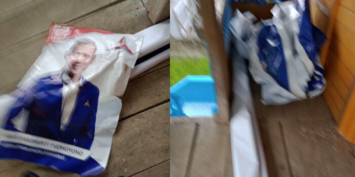 Baliho Ketum AHY di Kantor Sekretariat Diduga Dirusak Oknum SatPol PP