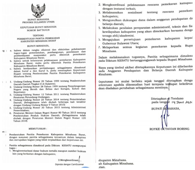 Bupati Minahasa Terbitkan SK Panitia Pemekaran Minahasa Barat