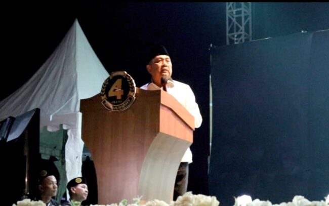 FOTO: Pendeta Hanny Pantouw saat membawakan ceramah kebangsaan pada acara Shalawat Malam Tahun Baru yang…
