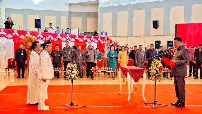 Foto: Gubernur Sulut Olly Dondokambey melantik Fransiscus Engelbert Manumpil sebagai Penjabat Bupati Kepulauan Talaud di…