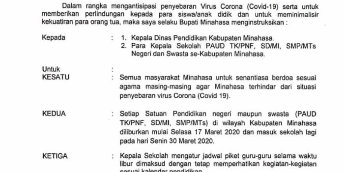 MINAHASA, JP- Untuk mencegah penyebaran virus corona (COVID-19), Bupati Minahasa, Dr. Ir. Royke Octavian Roring,…