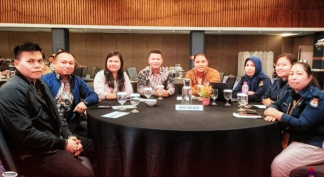 Foto: Komisioner KPU Talaud dan jajaran Sekretariat KPU Talaud dalam kegiatan Rakor tahapan pencalonan Kada…