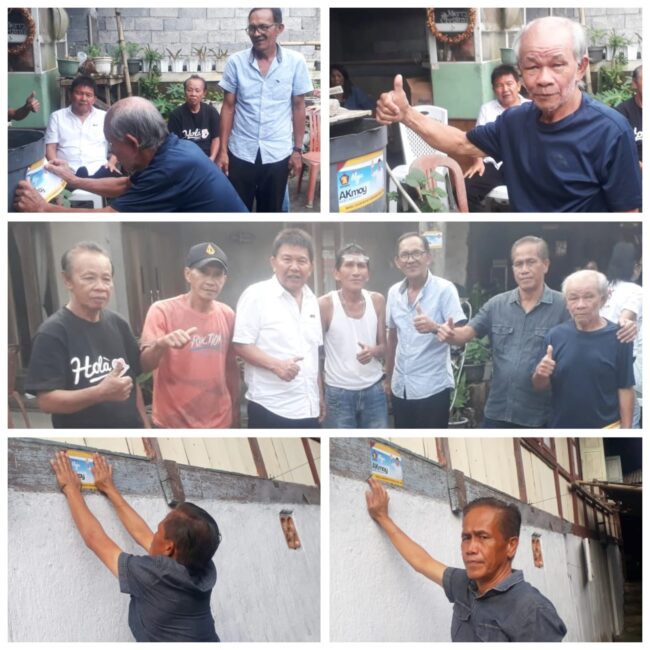 FOTO: (Atas) Kader PDIP Max Karwur memasang stiker Audy Karamoy. (Bawah) Kader Partai Golkar Vecky…