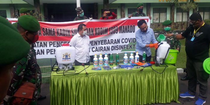 KADIN Sulut dan Kodim Semprot Disinfektan di Ruang Publik