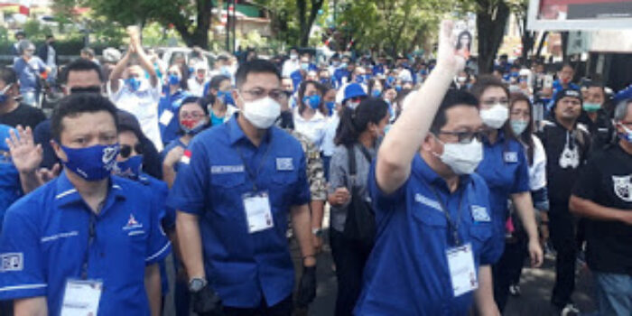 MANADO, JP- Aksi penurunan baliho MOR-HJP di rumah salah satu warga di Jl Manibang, Malalayang…