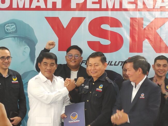 FOTO: Ketua DPW Partai Nasdem Victor Mailangkay menyerahkan Rekomendasi Dukungan dari Partai Nasdem kepada…