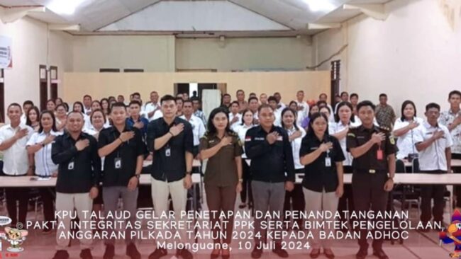Foto: Ketua KPU Talaud Andri L. J. Sumolang, Kadiv Rendatin Budirman, Kadiv Hukum Jekman Wauda,…