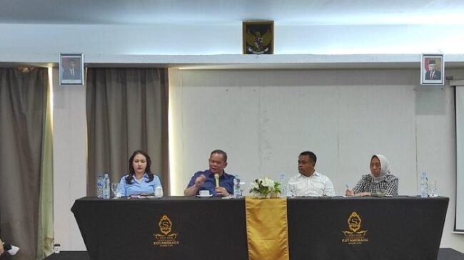 BERI ILMU: Calon Gubernur Sulut Elly Engelbert Lasut (tengah) saat memberikan kuliah umum kepada mahasiswa…