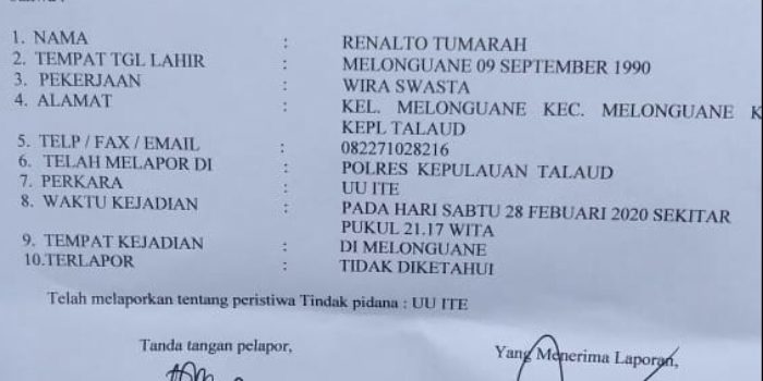 Oknum Legislator Golkar Talaud Ini Dipolisikan