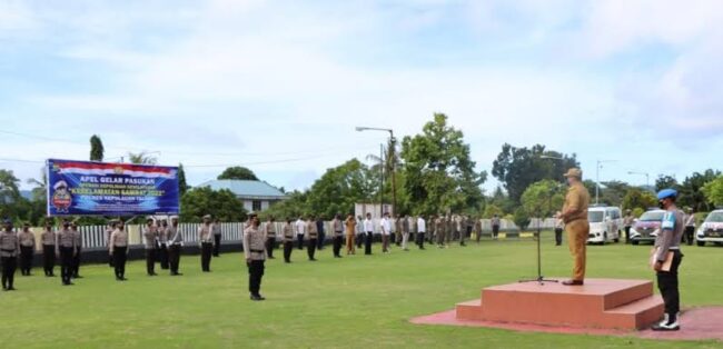Apel Gelar Pasukan Operasi Keselamatan Samrat 2022 di Mapolres Kepulauan Talaud, Selasa (01/03/2022) pagi. MELONGUANE,…