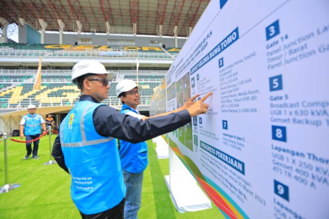 FOTO: Direktur Utama PLN Darmawan Prasodjo (kiri) bersama petugas siaga PLN mengecek kesiapan listrik untuk…