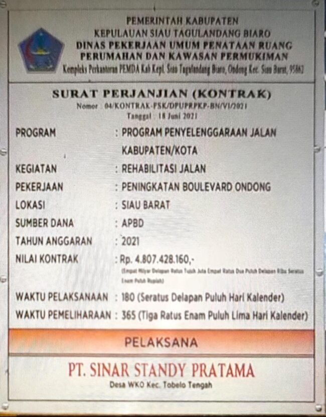 Pemilik Perusahan Pemenang Tender Proyek di Sitaro Diduga Adik dari Bupati Sitaro