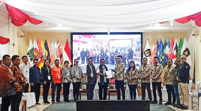 Foto: Bakal calon Bupati dan Wakil Bupati Talaud Moktar Arunde Parapaga-Ade Yezwa Sahea mendaftar di…