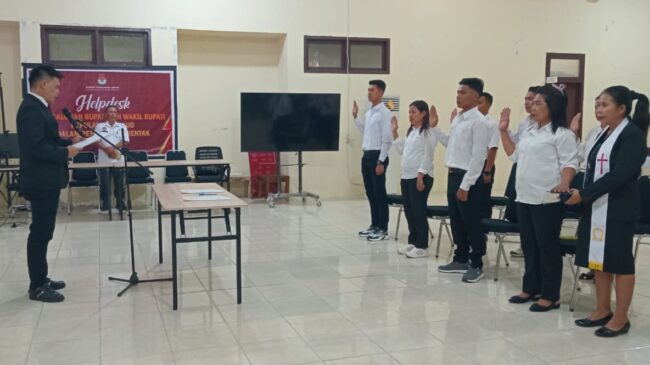 Foto: Ketua KPU Talaud Andri Sumolang melantik tujuh anggota PPS Pengganti Antar Waktu di Kantor…