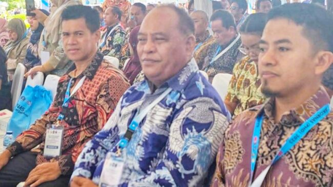 KOMITMEN HADIRKAN PRODUK HUKUM DAERAH BERKULITAS! Ketua DPRD Talaud Engelbertus Tatibi (tengah) dan Kabag Persidangan Charles…