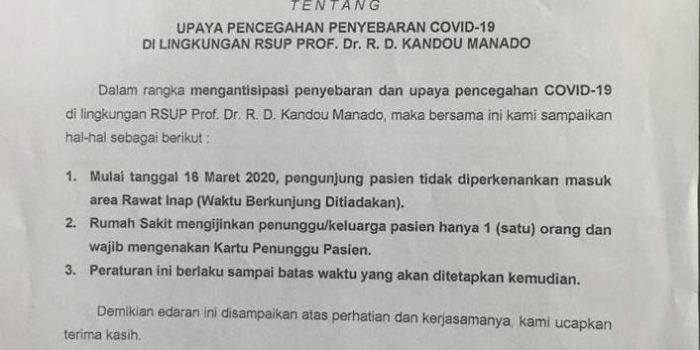 RSUP Kandou Manado Tak Berlakukan Lagi Jam Besuk