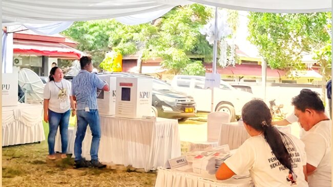 Foto: Simulasi Pemungutan Suara Pemilihan 2024 di Kantor KPU Talaud, Rabu (23/10). MELONGUANE, JP –…