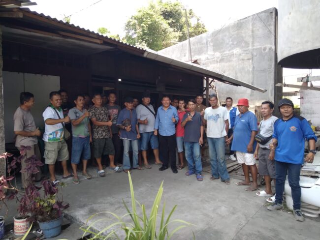 KOMPAK: Audy Karamoy bersama para sopir truk pengangkut material bangunan di samping Stadion Klabat, Manado….