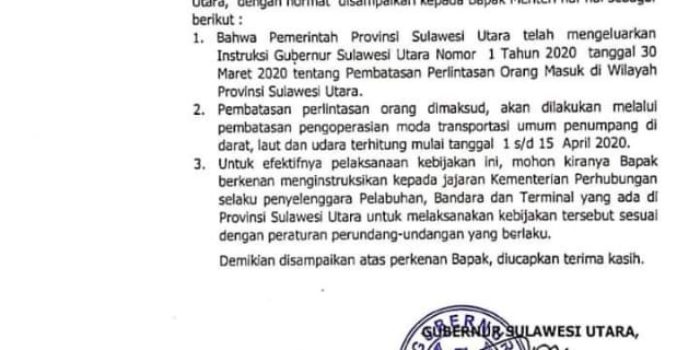 Surat Gubernur Sulut ke Menhub Beredar di Medsos