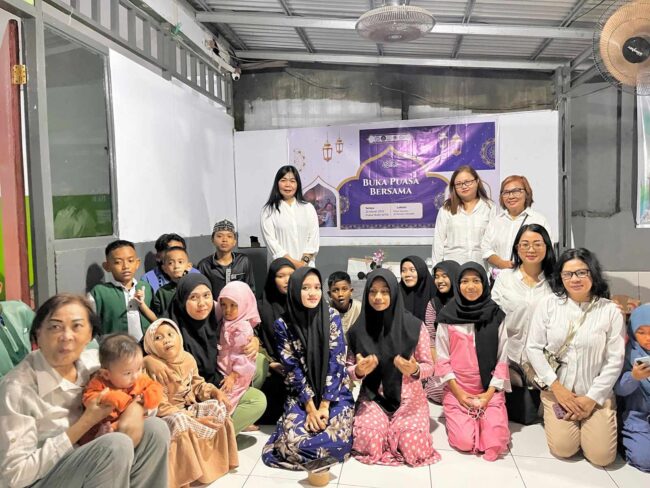 FOTO: Anggota WKRI Ranting Santa Agatha (baju putih / kanan belakang) foto bersama usai berbuka…