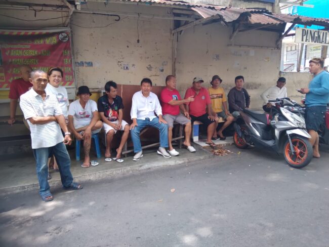 MERAKYAT: Audy Karamoy duduk dengan santainya membaur dan bercerita dengan para tukang ojek di…