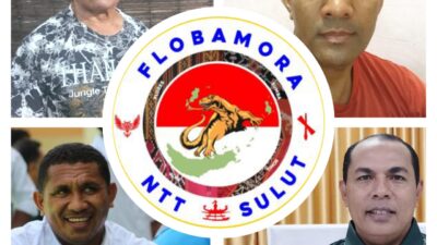 FOTO: (Tengah) Logo Ormas Flobamora Sulawesi Utara, (Searah jarim jam) Gerardua Bagi, Johny Nanggor, Pdt…