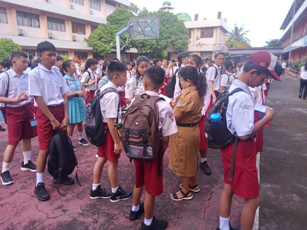 MANADO, JP – Pemandangan menarik sekaligus unik terjadi di halaman SMP Frater Don Bosco Manado, Senin (14/07/2025). Ratusan siswa-siswi berseragam Sekolah Dasar (SD) terlihat berada di halaman sekolah milik Yayasan Persekolahan Frater Don Bosco Manado. Pemandangan langka karena tidak terjadi di SMP yang lain ini menarik perhatian masyarakat sekitar.