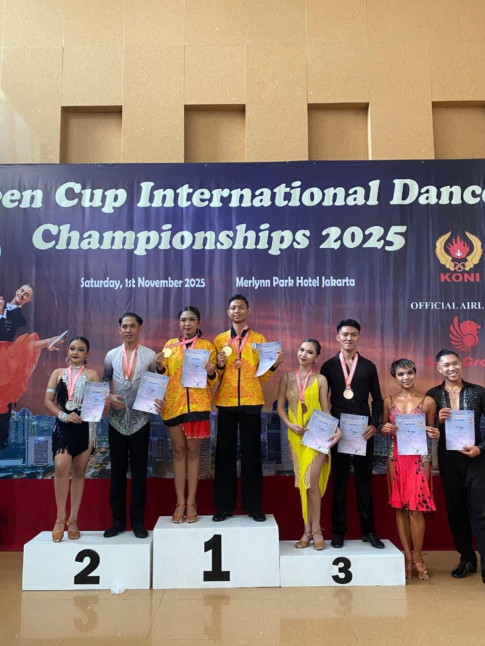 Hasil perolehan juara kategori Latin Dance Queen Cup International Dance Sport Championship 2025 di Hotel Merlyn Jakarta.