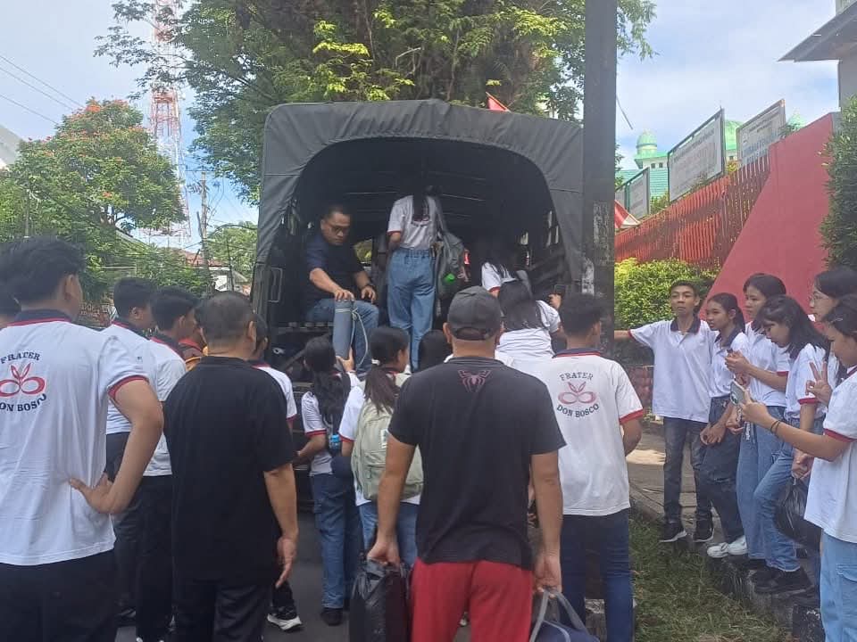 Sebelum menuju Tateli, pada pukul 07.30 Wita satu persatu siswa-siswi pengurus OSIS SMP Frater Don Bosco Manado mendatangi sekolah mereka, yang beralamat di Kelurahan Lawangirung Kecamatan Wenang Kota Manado Provinsi Sulawesi Utara. Menariknya, yang datang untuk ikut kegiatan ini tak hanya pengurus OSIS tapi juga beberapa siswa-siswi lain sehingga jumlahnya menjadi 88 orang ini. Rupanya kegiatan ke barak militer ini tak hanya disambut gembira pengurus OSIS tapi juga digandrungi siswa-siswi lainnya di sekolah tersebut.